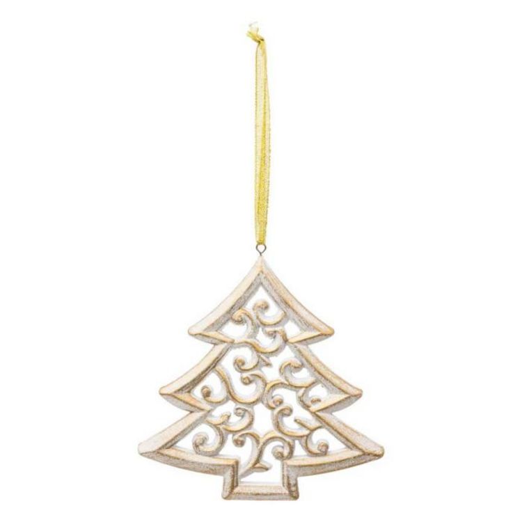Sujet de Noël en Bois Sapin Arabesque 15cm Blanc