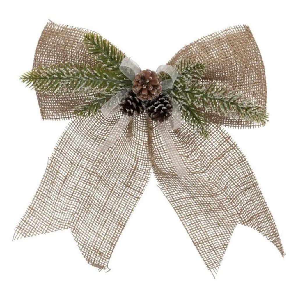 Sujet de Noël en Jute Nœud Pomme de Pin 38cm Beige