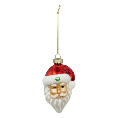 Informations Techniques : Dimensions : L. 6,1 x l. 5,2 x H. 10,2 cm Matière : Verre Spécificités : Déco & Festif Sujet de Noël à suspendre Design tête de Père Noël Poids : 0,02 kg Couleur : Rouge
