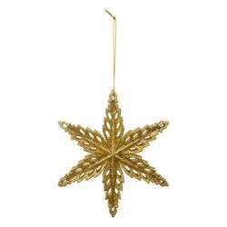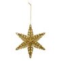 Informations Techniques : Dimensions : L. 13 x l. 2,8 x H. 14,5 cm Matières : Polystyrène & PET Spécificités : Déco & Festif Sujet de Noël à suspendre Design étoile pailletée Poids : 0,03 kg Couleur : Or