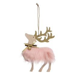 Informations Techniques : Dimensions : L. 12,5 x l. 2,5 x H. 17,5 cm Matière : Bois Spécificités : Pratique & Utile Sujet de Noël A Suspendre Design Renne avec Fourrure Poids : 0,025 kg Couleur : Rose & Or