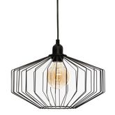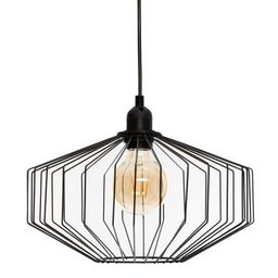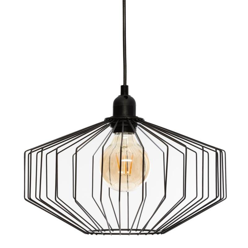 Cette suspension en fer se compose d'un support de lampe en polyéthylène et d'un câble en cuivre et PVC de 80 cm de long.