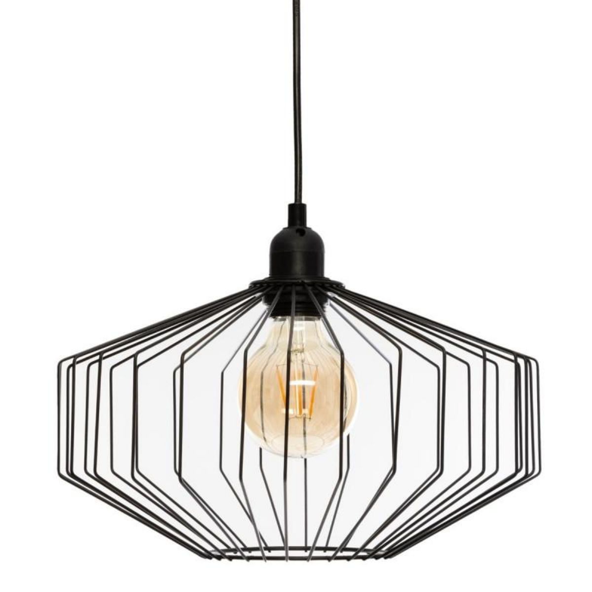[img-18329-left-home_default]Description:À la fois contemporaine et originale cette suspension Azur Noire en métal Diamètre 30 cm d'Atmosphera donnera de l'allure à votre pièce, telle une oeuvre d'art au plafond.Cette suspension en fer se compose d'un support de lampe en polyéthylène et d'un câble