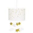 Suspension blanc et ocreAvez-vous pensé à l'impact d'un beau luminaire dans la décoration de la chambre de votre enfant ? Grâce à cette suspension blanc et ocre avec des nuages et étoiles suspendus très originale, apportez une touche de rêve à la décoration de la chambre de votre enfant.C'est incroy