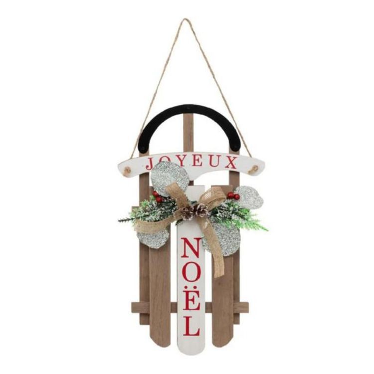 Informations Techniques : Dimensions : L. 20 x l. 4,5 x H. 35 cm Matière : MDF Spécificités : Original & Design Suspension de Noël Design luge Inscriptions Joyeux Noël Poids : 0,24 kg Couleur : Marron