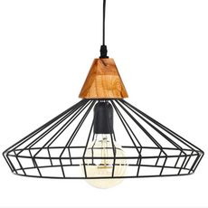 Description:Pour une finition parfaite de votre décoration d'intérieur, choisissez la jolie suspension fil en métal 38 x 22,5 cm d'Atmosphera.Vous serez charmé par son style Contempo Chic donné par un abat-jour en fer mélé à un support en bois.Il vous suffira d'ajouter une ampoule à douille E 27 (no