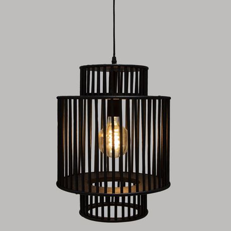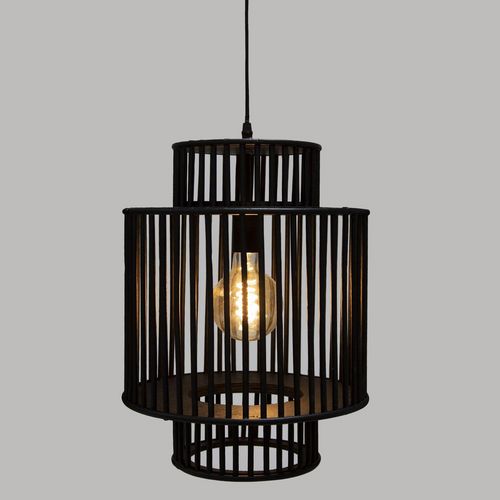 La couleur noire rejoint nos intérieurs ! Créez une atmosphère élégante et tropicale avec cette suspension en bambou.FICHE TECHNIQUE- Structure de la lampe en contre plaqué.- Abat-jour en bambou.- Fonctionne avec une alimentation sur secteur.- Ampoule non incluse.CARACTERISTIQUES TECHNIQUES- Dimensi