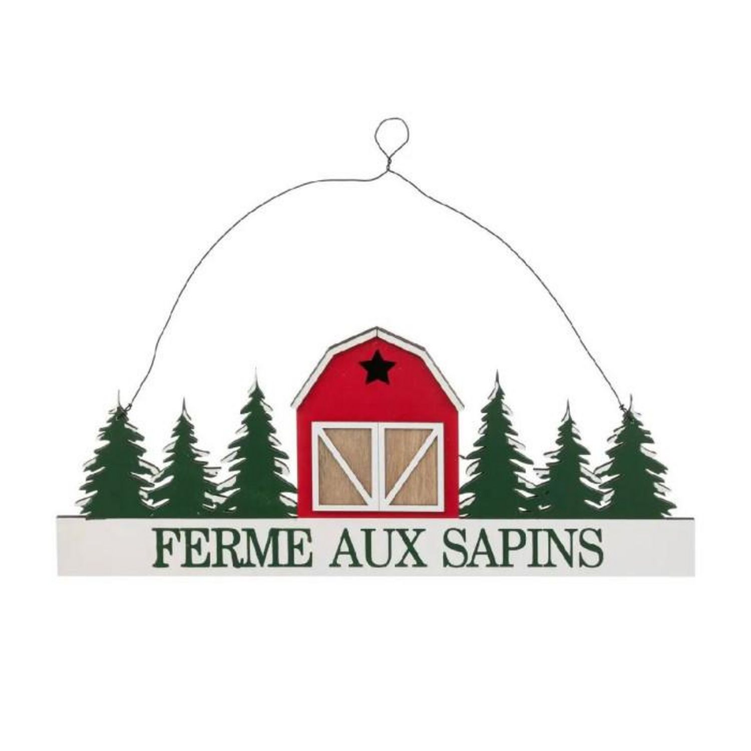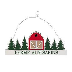 Suspension Pancarte Noël Ferme aux Sapins 45cm Vert