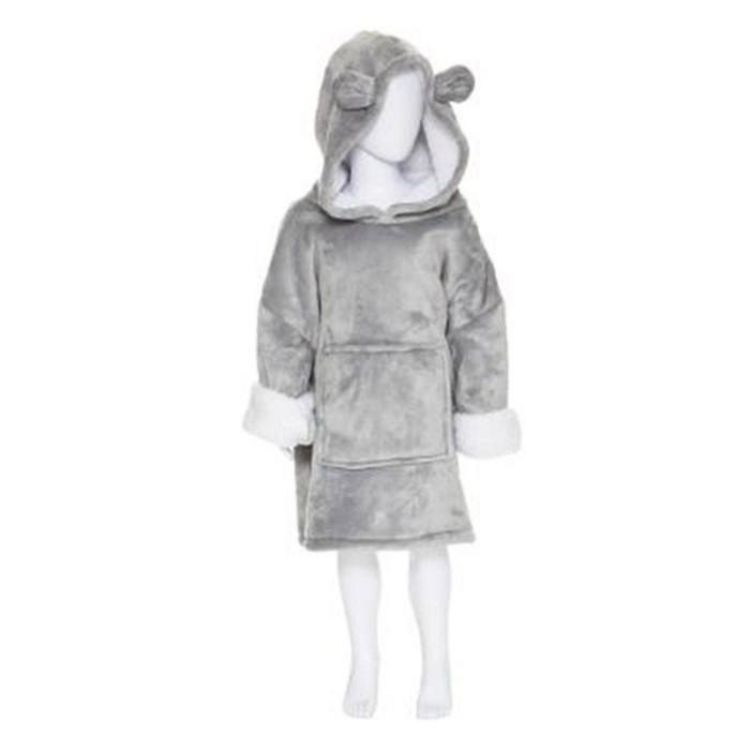 Plaid Sweat Capuche Enfant Ours 60x95cm Gris
