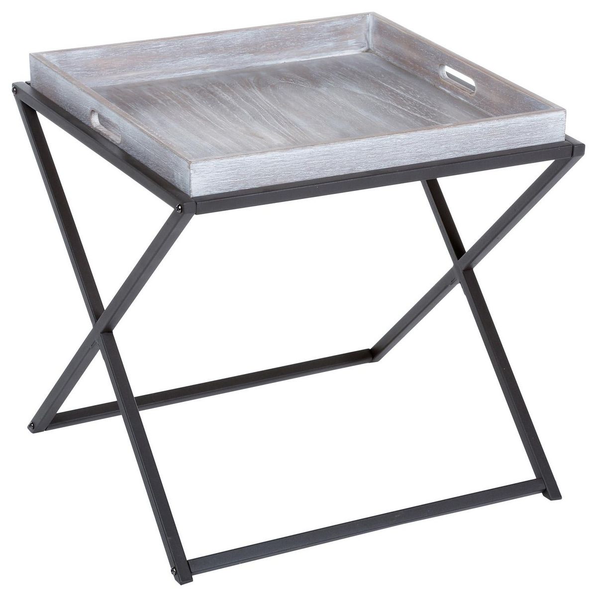 FICHE TECHNIQUE- Structure en métal.- Plateau en MDF.- Plateau amovible et facile à transporter avec ses deux poignées.CARACTERISTIQUES TECHNIQUES- Dimensions : L. 48 x l. 48 x H. 47,5 cm.- Dimensions du plateau : L. 45,5 x l. 45,5 X H. 5 cm.- Poids : 3,9 kg.