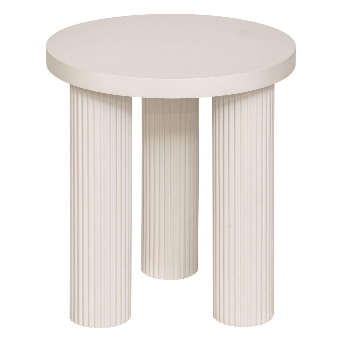 Apportez une touche contemporaine à votre intérieur avec la table d'appoint ronde TELLA à trois pieds rainurés. Son design structuré, à la fois sobre et graphique, en fait un meuble aussi décoratif que fonctionnel. Le plateau circulaire repose sur trois pieds cylindriques aux lignes verticales sculptées, offrant stabilité et caractère. Idéale comme bout de canapé, table de chevet ou support pour une plante ou une lampe, elle s'intègre facilement dans une pièce de vie, une chambre ou une entrée. Son coloris beige clair contribue à créer une atmosphère lumineuse et apaisante.