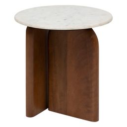 Table à café ronde en marbre et bois massif NANDA - Blanc