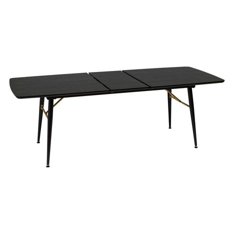 Découvrez la table à manger extensible Aubrey, un modèle conçu pour combiner style et praticité. Capable de passer d'une longueur de 180 cm à 220 cm, cette table est idéale pour les grandes réunions familiales ou les dîners entre amis. Sa finition noire raffinée et ses détails dorés apportent une to