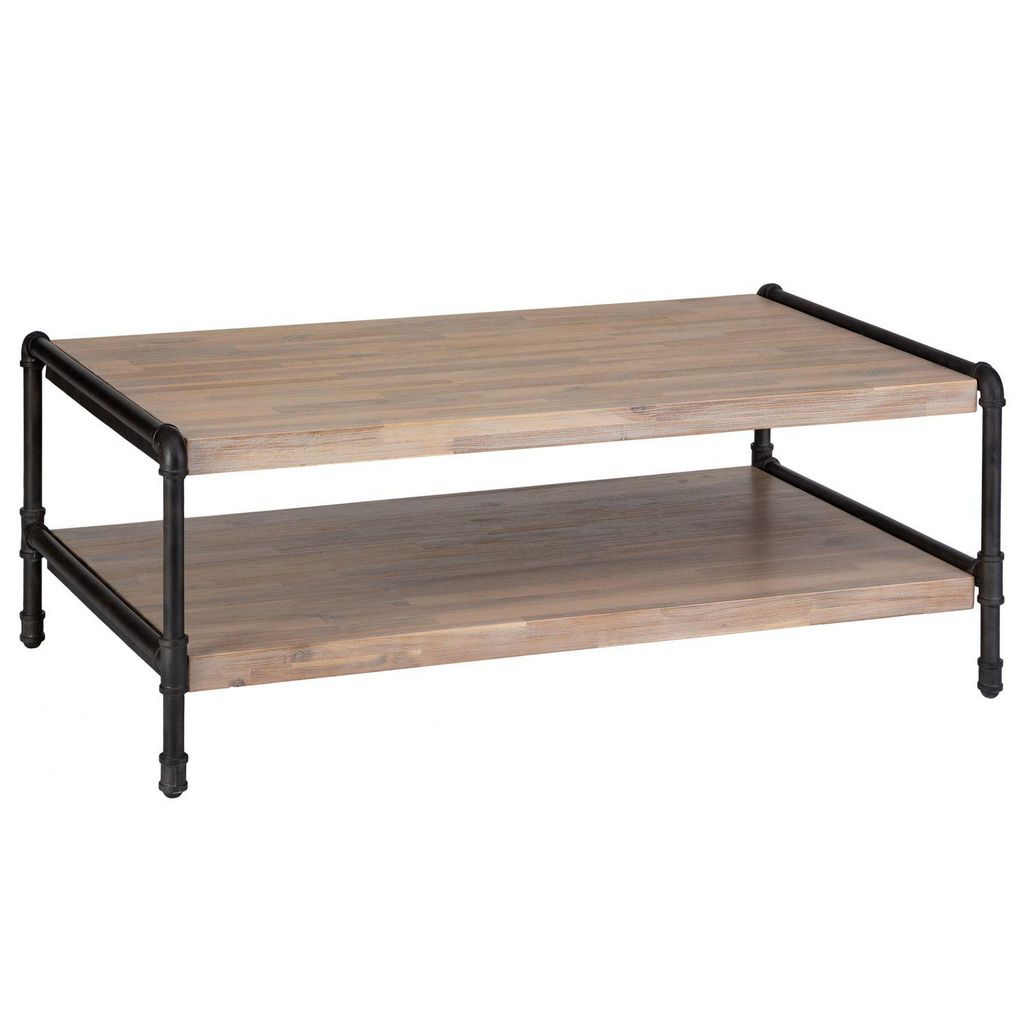 Table basse design bois et métal industriel Siam - L. 120 x H. 40 cm - Noir