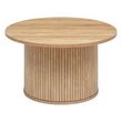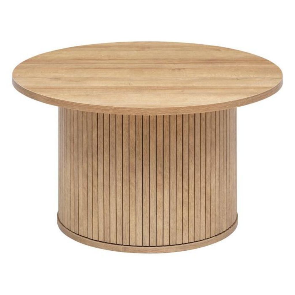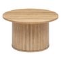 Informations Techniques : Dimensions : D. 70 x H. 40 cm Matières : Plateau : MDF Piètement : Bois (Contreplaqué) & MDF Spécificités : Design & Utile Lattes verticales Forme ronde À monter soi-même Poids : 14,12 kg Couleur : Beige
