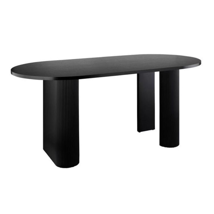 Informations Techniques : Dimensions : L. 120 x l. 60 x H. 45 cm Matière : MDF Spécificités : Élégante & Design Table basse ovale Finition semi-brillante Piètement effet cannelé Avec patins en plastique À monter soi-même Poids max supporté : 50 kg Poids : 19,9 kg Couleur : Noir