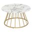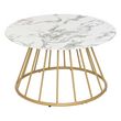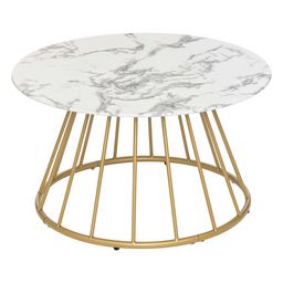 Alliez style et fonctionnalité avec la table basse ronde effet marbre Rayo. Son plateau imitation marbre blanc chic est rehaussé par des pieds en métal doré pour un look moderne et élégant. Que ce soit pour y poser vos magazines, une lampe ou une tasse de café, cette table basse est la pièce idéale pour ajouter une touche tendance à votre salon.