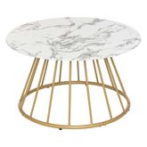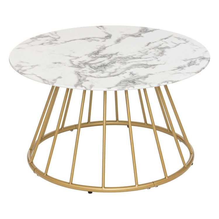Alliez style et fonctionnalité avec la table basse ronde effet marbre Rayo. Son plateau imitation marbre blanc chic est rehaussé par des pieds en métal doré pour un look moderne et élégant. Que ce soit pour y poser vos magazines, une lampe ou une tasse de café, cette table basse est la pièce idéale
