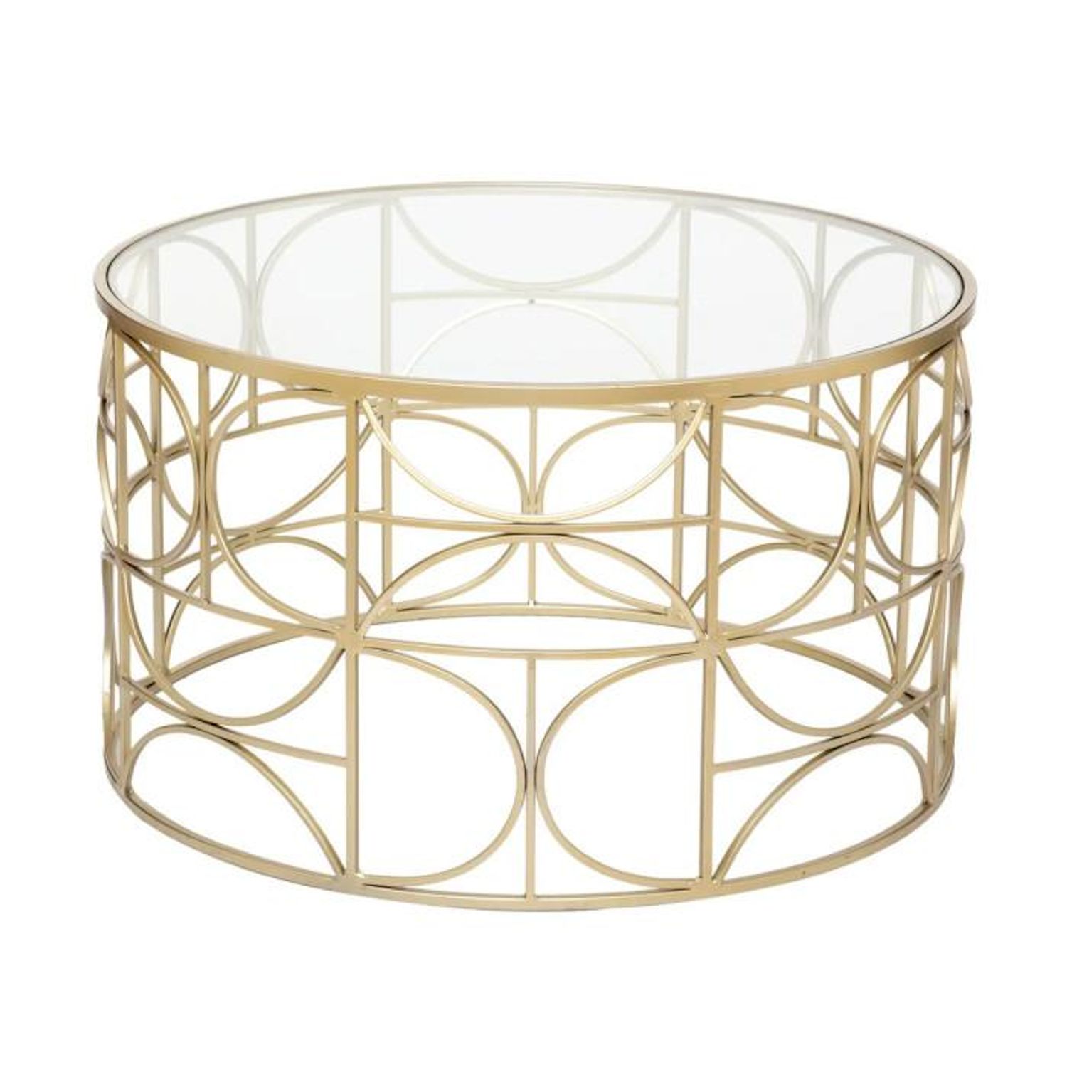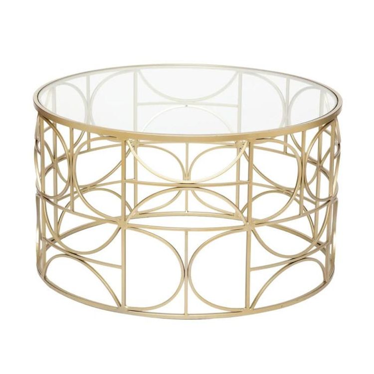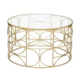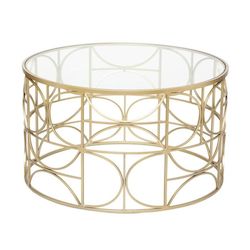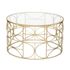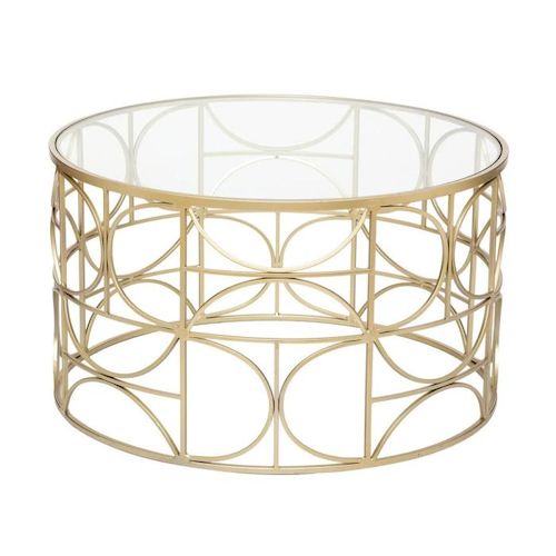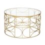 Informations Techniques : Dimensions : D. 71 x H. 41 cm Matières : Fer & Verre trempé Spécificités : Déco & Tendance Table Basse design Forme Ronde Poids : 10 kg Couleur : Or
