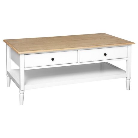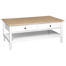 Table basse Solen 4 tiroirs - Pin et Blanc