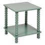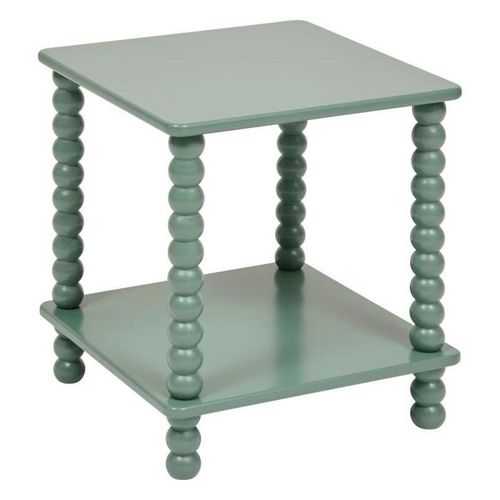Informations Techniques : Dimensions : L. 40 x l. 40 x H. 45 cm Matières : Plateau : MDF Piètement : Bois (Pin) Spécificités : Élégante & Pratique Table d'appoint carrée Avec une étagère Pieds torsadés Finition mate À monter soi-même Poids max supporté : 30 kg Poids : 4,6 kg Couleur : Vert Olive