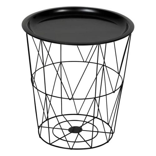 Informations Techniques : Dimensions : D. 37 x H. 40 cm Matière : Acier Spécificités : Pratique & Moderne Table d'appoint ronde Design ajouré Plateau amovible Fonction coffre Finition glossy Poids : 1,2 kg Couleur : Noir