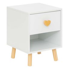 En savoir +Table de chevet au design sobre avec sa poignée doré en forme de cœur qui apporte une touche de fantaisie. Elle est composée d'un tiroir pour vous permettre de ranger vos affaires ainsi que d'un compartiment en dessous pour y ranger des affaires, un plaid, une boîte ou un objet décoratif.