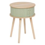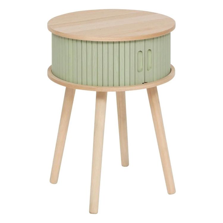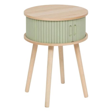 Informations Techniques : Dimensions : D. 40 x H. 54 cm Matière : MDF Spécificités : Pratique & Tendance Table de chevet ronde 2 portes coulissantes Design effet lattes Finitions mate Placage bois de frêne et de pin À monter soi-même Poids : 3,96 kg Couleur : Vert