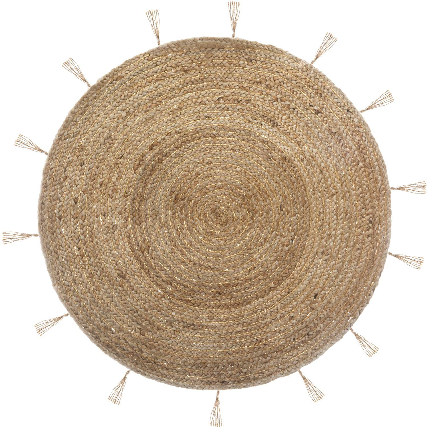 Vous recherchez un élément de décoration pour créer une ambiance chaleureuse dans votre pièce ? Ce tapis en jute vous charmera. Vous serez séduit par sa matière et son design à franges.FICHE TECHNIQUE- Tapis rond en jute végétale et polyester.- On aime son design avec ses fils dorés.CARACTERISTIQUES