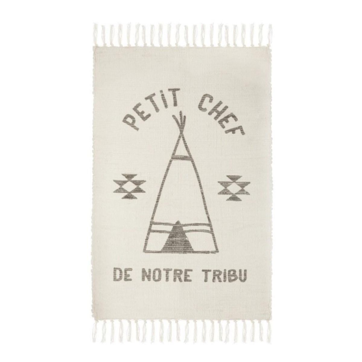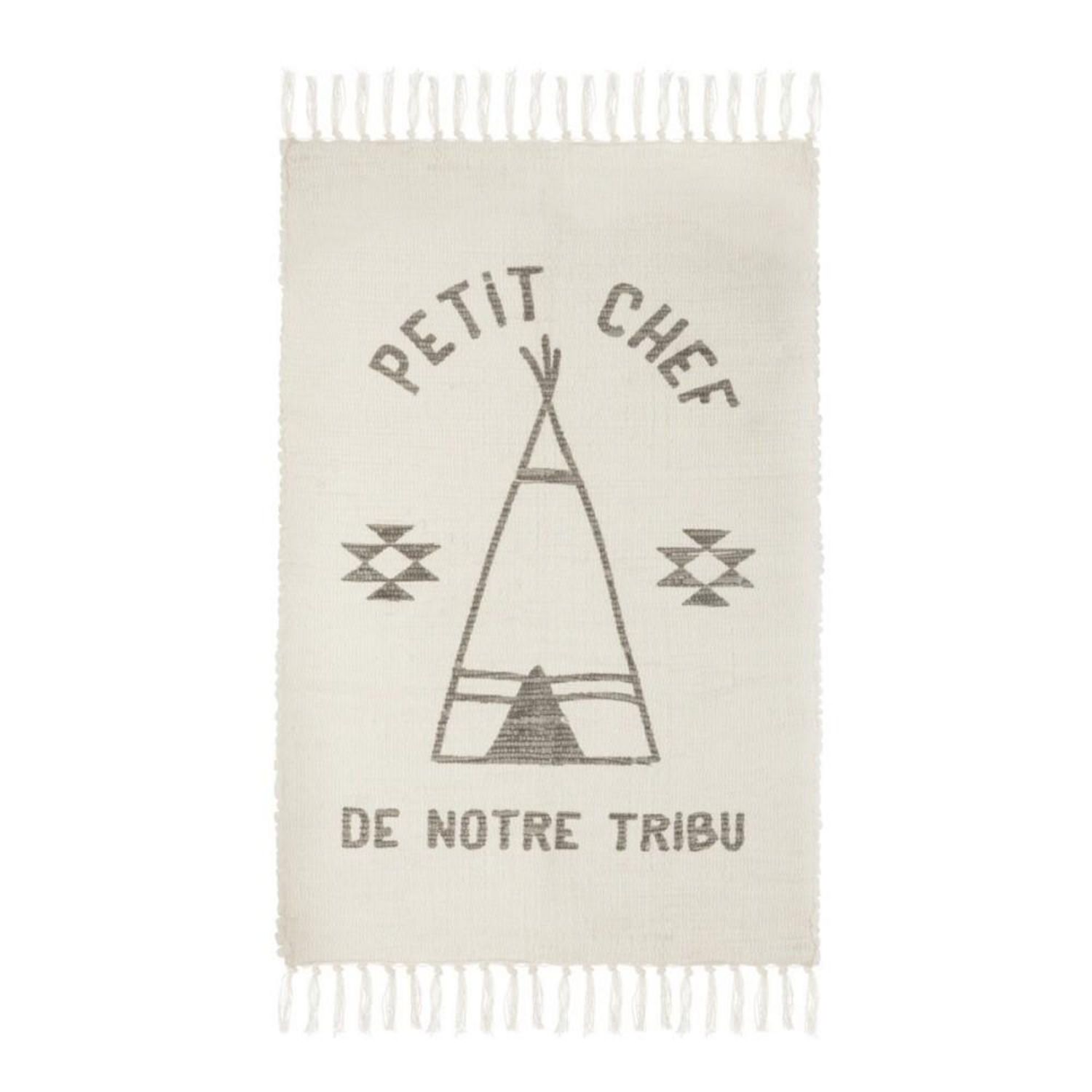 Magnifique tapis imprimé de l'inscription Petit chef de notre tribu avec ses franges blanches. Pour réchauffer votre déco, adoptez immédiatement ce tapis aux dimensions de 60x90 cm dans votre intérieur.Informations sur le tapis à franges Tribu :Dimensions : 60 x 90 cmMatières : 90% polyester, 10%