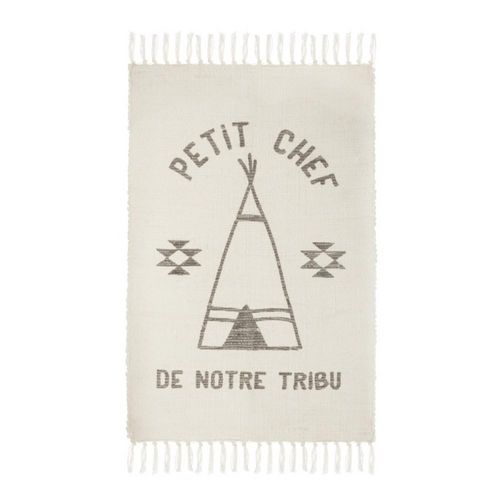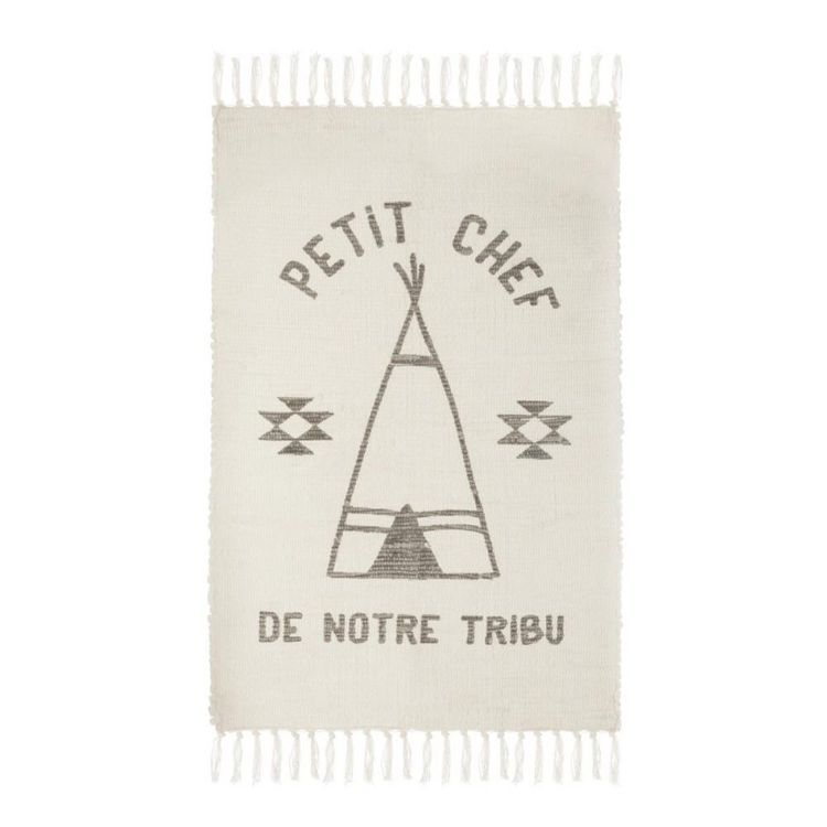 Magnifique tapis imprimé de l'inscription Petit chef de notre tribu avec ses franges blanches. Pour réchauffer votre déco, adoptez immédiatement ce tapis aux dimensions de 60x90 cm dans votre intérieur.Informations sur le tapis à franges Tribu :Dimensions : 60 x 90 cmMatières : 90% polyester, 10% cotonPoids : 750 g