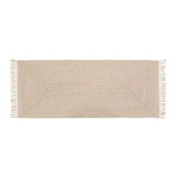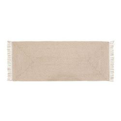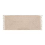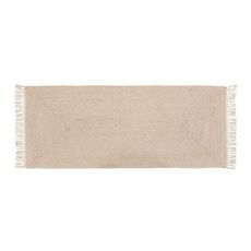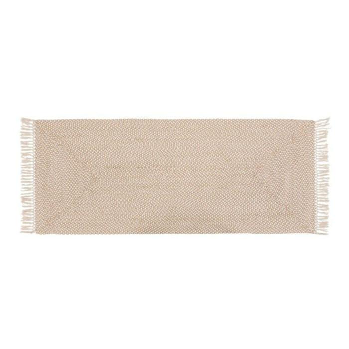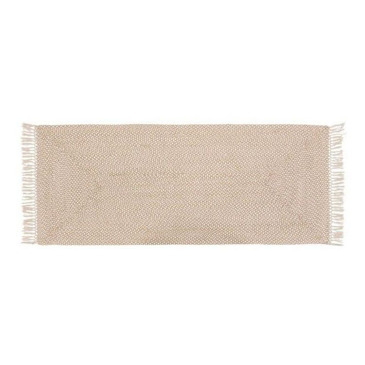 Informations Techniques : Dimensions : L. 200 x l. 80 x H. 0,5 cm Matières : Jute & Coton Spécificités : Pratique & Utile Tapis de couloir Avec franges Forme rectangulaire Poids : 3 kg Couleur : Beige