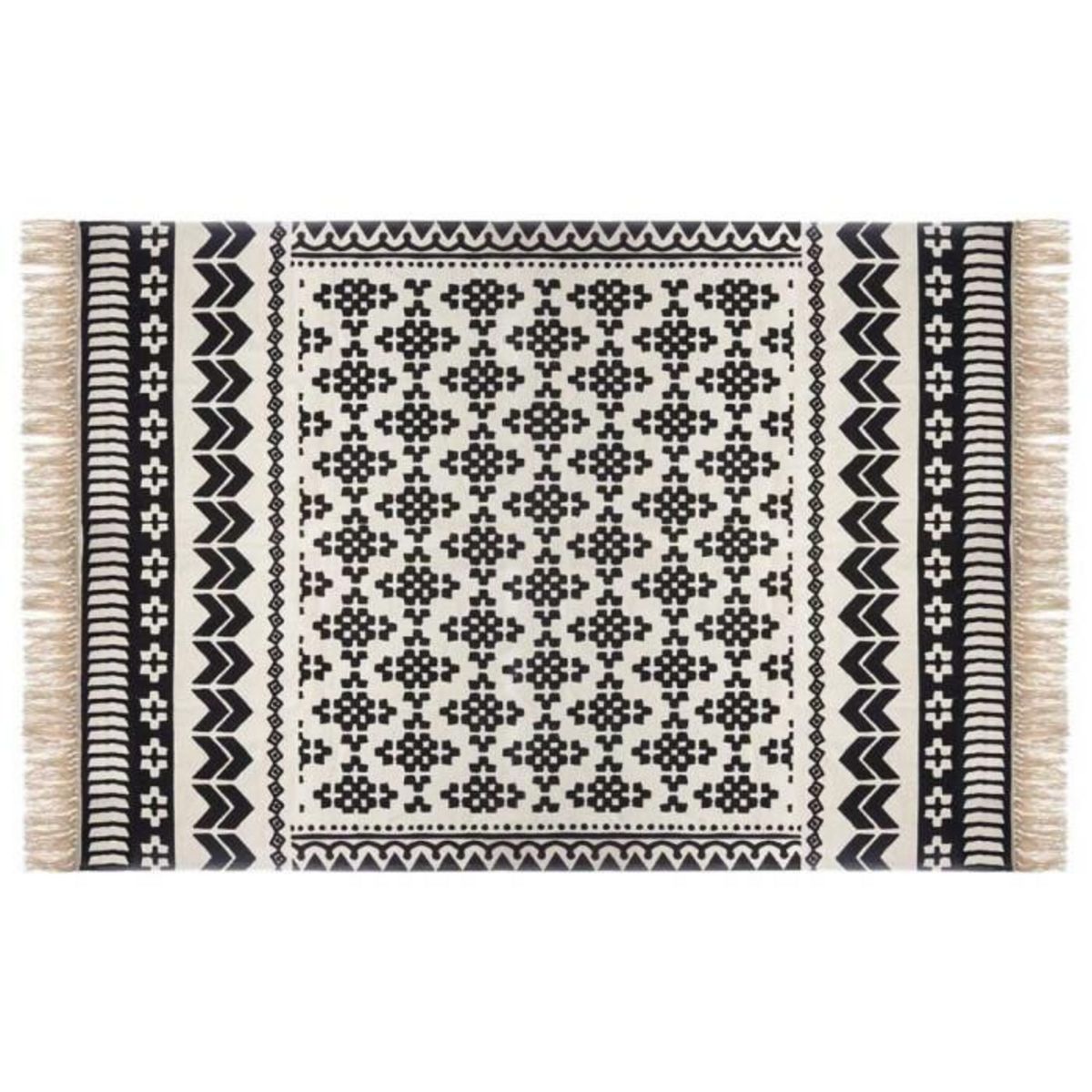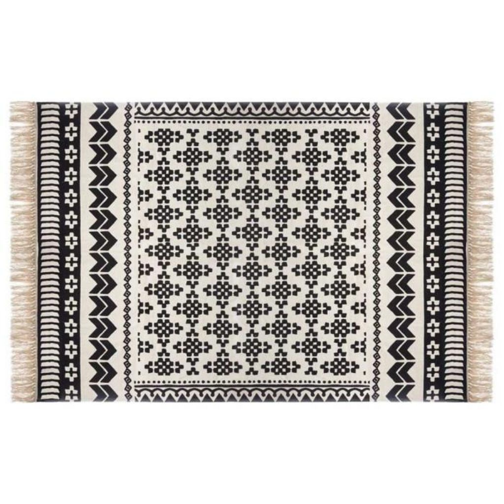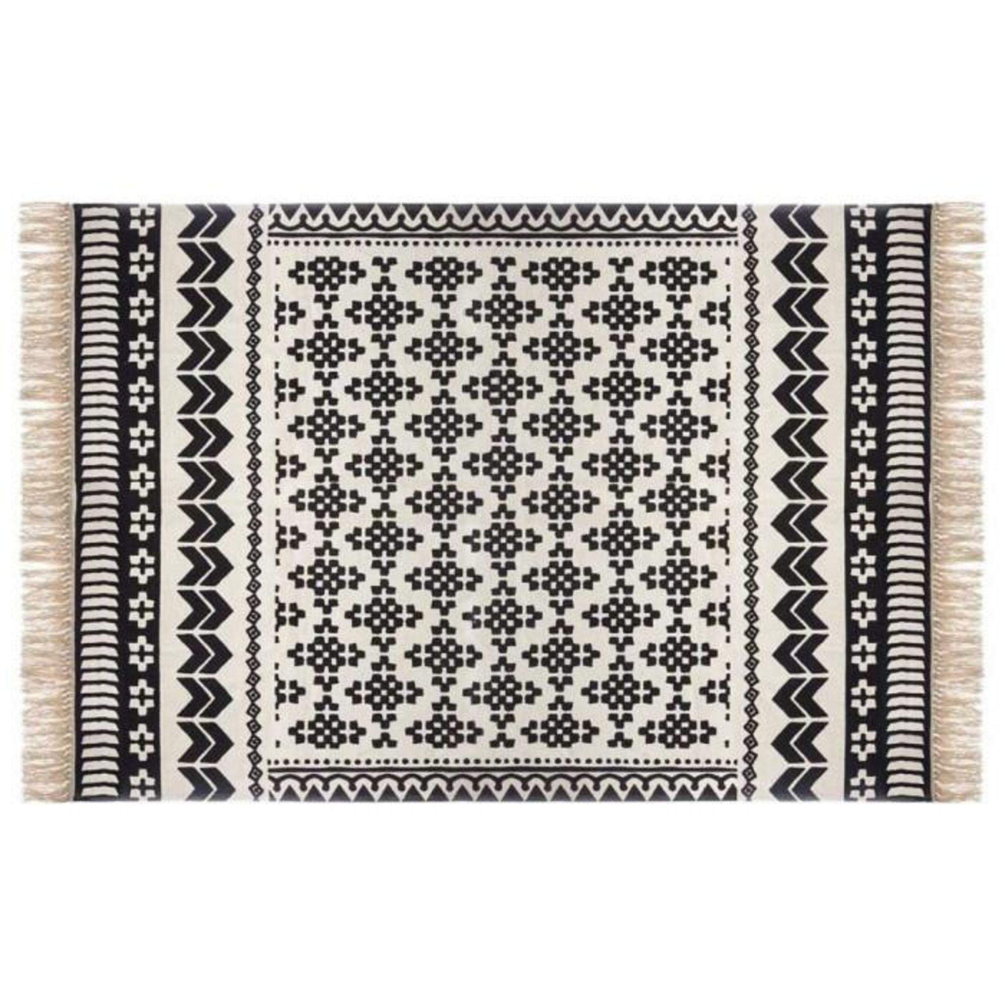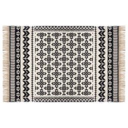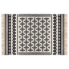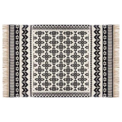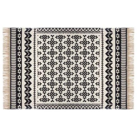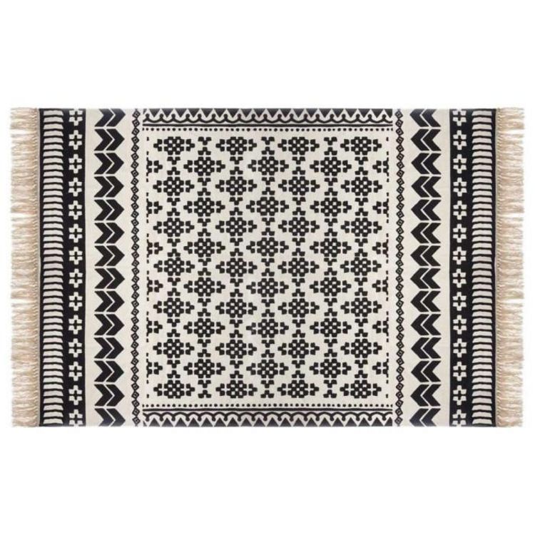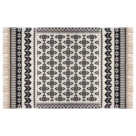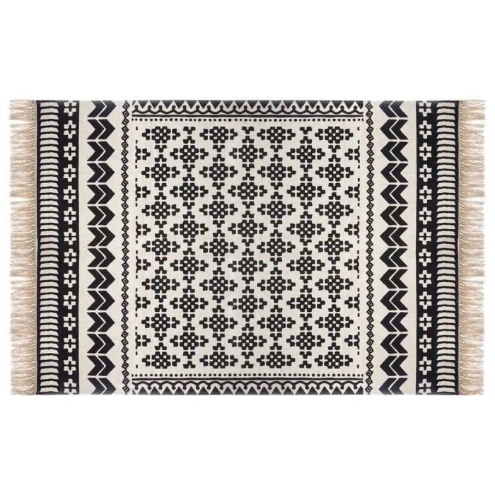Informations Techniques : Dimensions : L. 170 x l. 120 cm Matière : Coton Spécificités : Design & Élégant Tapis déco à franges Motif ethnique Forme rectangulaire Facile d'entretien & d'utilisation Poids : 1,93 kg Couleur : Noir & Blanc