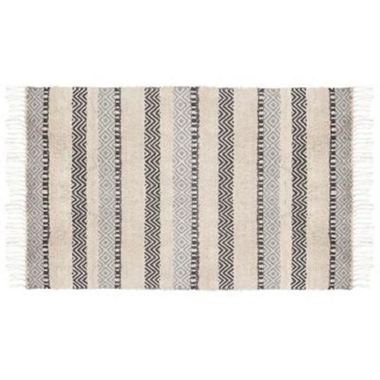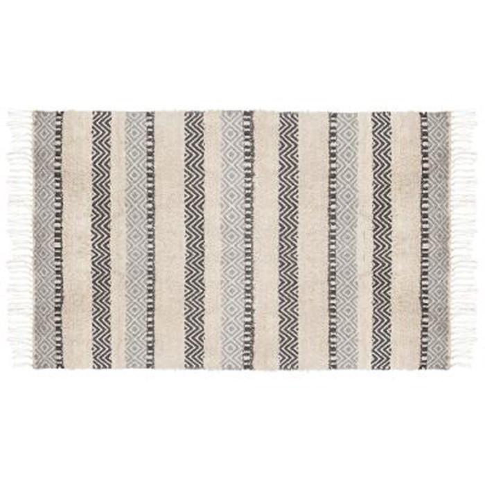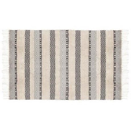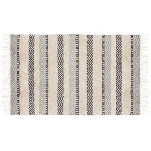 Informations Techniques : Dimensions : L. 150 x l. 90 cm Matières : Coton, Polyester & Viscose Spécificités : Pratique & Tendance Tapis Déco Avec Franges Forme rectangulaire Poids : 2,3 kg Couleur : Bleu & Beige