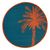 Informations Techniques : Dimensions : D. 120 x H. 0,5 cm Matière : Polypropylène Spécificités : Déco & Coloré Tapis rond Imprimé palmier Passepoil orange Densité : 450 g/m2 Poids : 0,54 kg Couleur : Bleu Canard