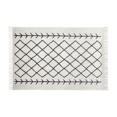 Un beau tapis d'esprit ethnique, pile dans la tendance ! Tout en coton et joliment bordé de franges, il est animé d'un superbe motif graphique. Entrée, chambre, salon... il trouve sa place partout dans la maison en apportant ce petit "supplément d'âme" qui fait toute la différence...