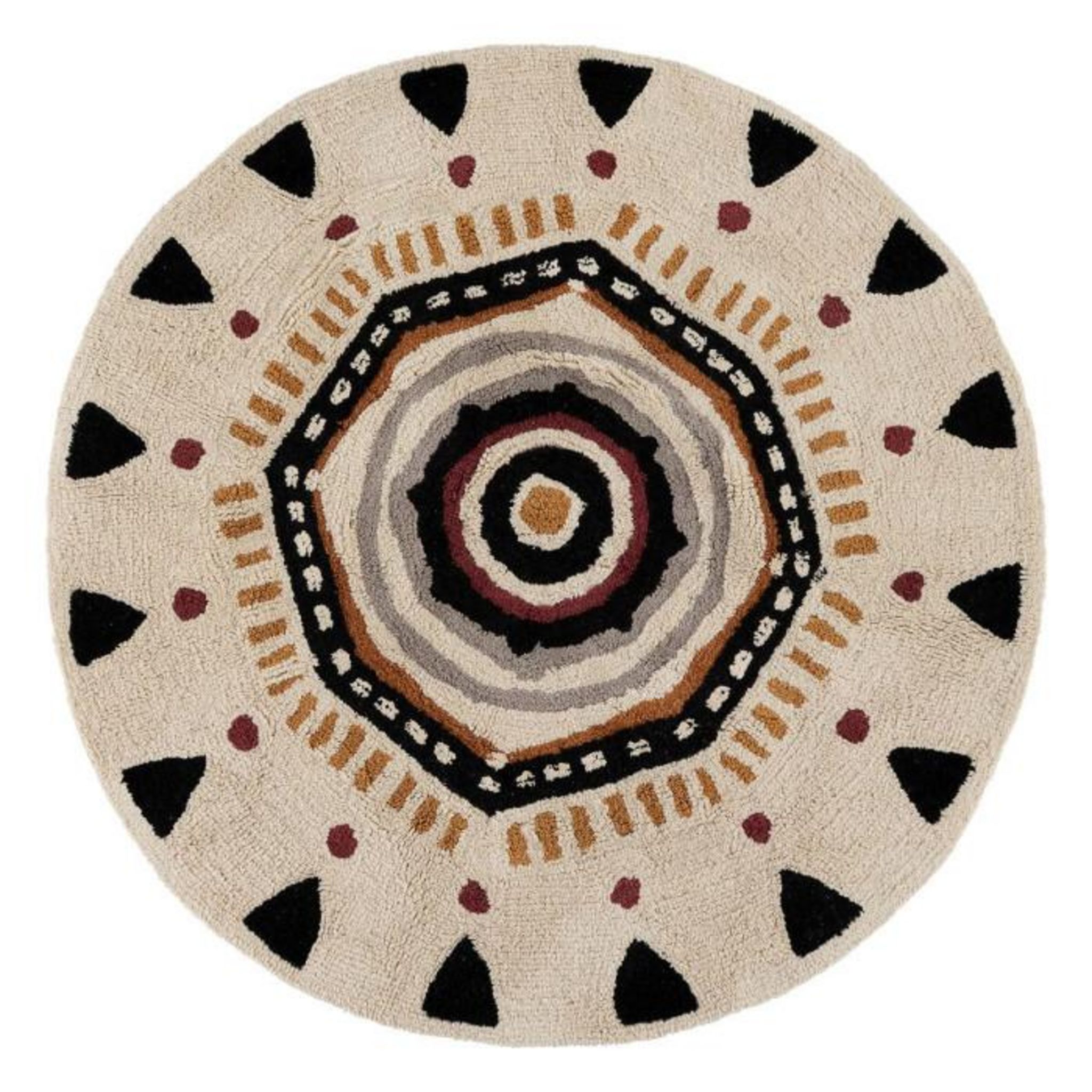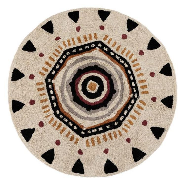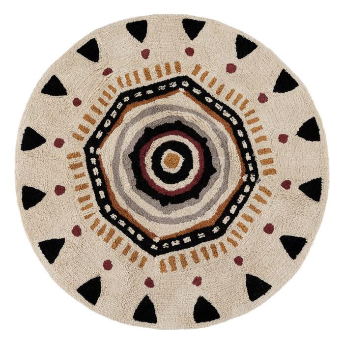 Informations Techniques : Dimensions : D. 118 x H. 2 cm Matière : 100% Coton Spécificités : Pratique & Utile Tapis déco Imprimés graphiques Lavable Forme ronde Poids : 1,85 kg Couleur : Multicolore