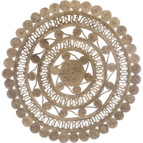 Vous recherchez un élément de décoration pour créer une ambiance chaleureuse et naturelle dans votre pièce ? Ce tapis rond en jute vous charmera. Vous serez séduit par sa matière et son design en dentelle.FICHE TECHNIQUE- Tapis rond en jute végétale et polyester.CARACTERISTIQUES TECHNIQUES- Dimensio