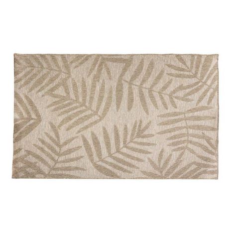 Informations Techniques : Dimensions : L. 230 x l. 160 x H. 0,5 cm Matière : Polypropylène Spécificités : Pratique & Utile Tapis déco Motif feuilles Usage intérieur/extérieur Résistant aux UVs Facile d'entretien Poids : 5,5 kg Couleur : Beige