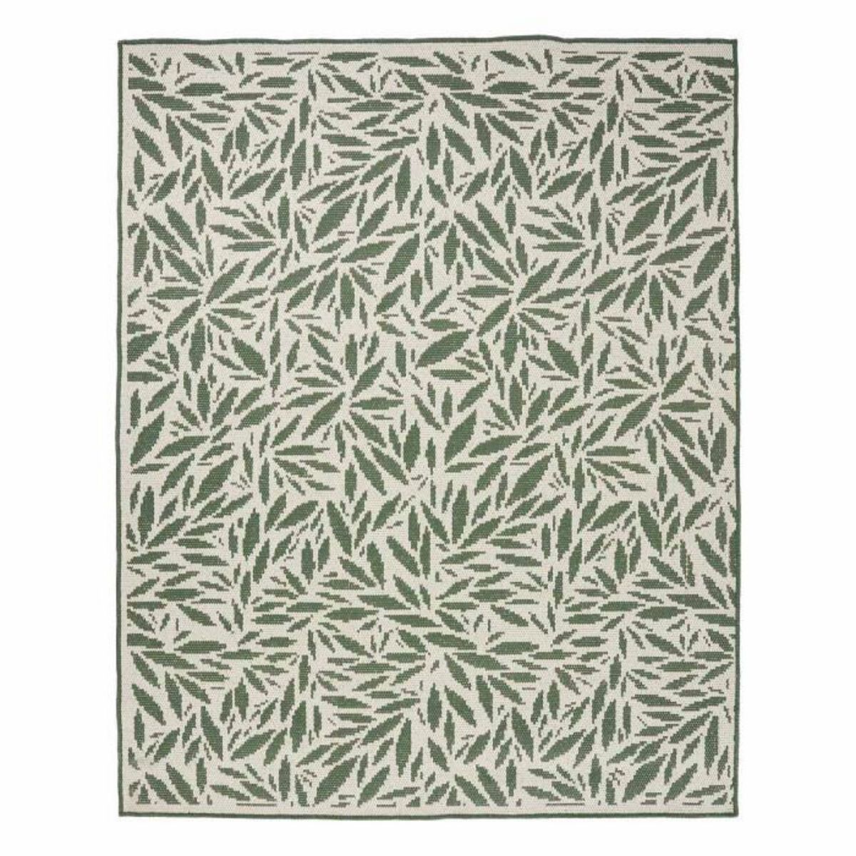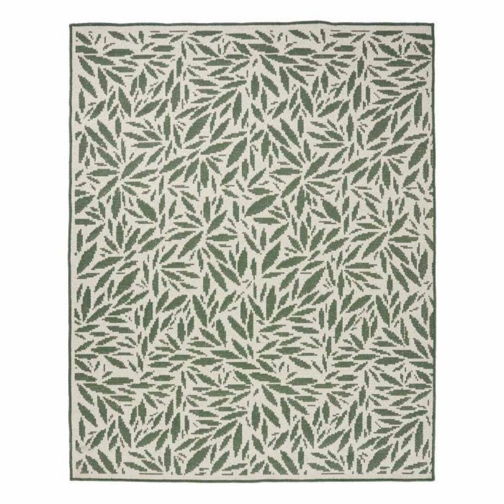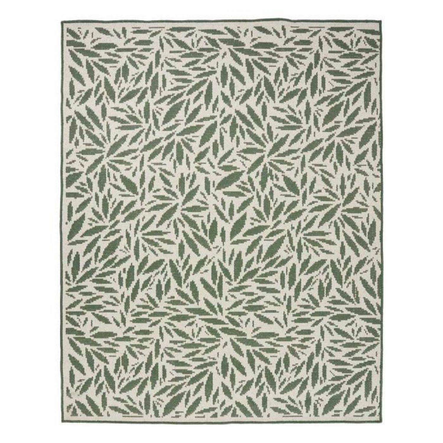 Informations Techniques : Dimensions : L. 150 x l. 100 x H. 1 cm Matières : Polypropylène & Polyester (900 g/m2) Spécificités : Déperlant & Antidérapant Tapis rectangulaire Motifs feuilles Usage intérieur/extérieur Résistant aux UVs Facile à entretenir Label Oeko-Tex Poids : 1,35 kg Couleur : Vert