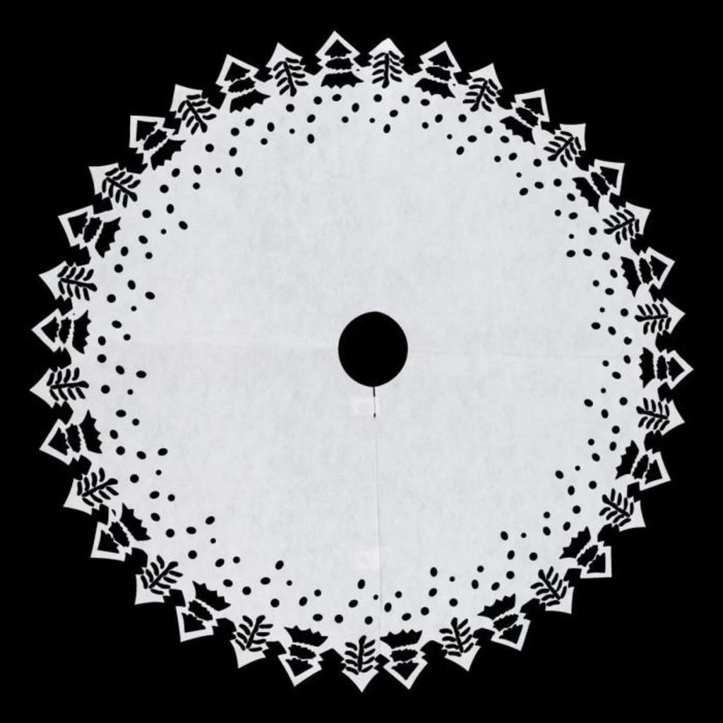 Informations Techniques : Dimensions : D. 100 x H. 0,1 cm Matière : Polyester Spécificités : Pratique & Utile Tapis pour pied de sapin Design avec sapins Facile à installer grâce à son encoche Forme ronde Poids : 0,1 kg Couleur : Blanc