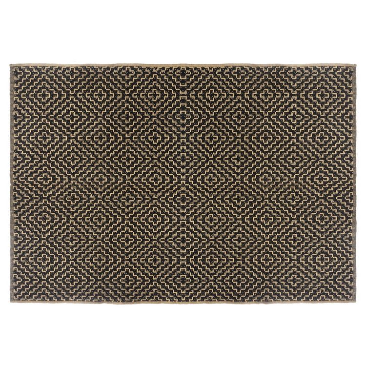Tapis rectangulaire en jute et coton noir 120x170 cm