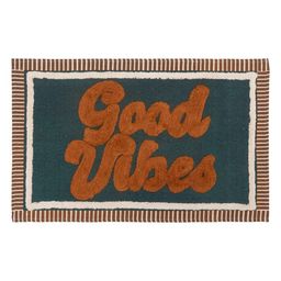 Ce tapis rectangulaire Good Vibes trouvera facilement sa place dans une chambre à coucher, une cuisine ou une entrée. Confectionné en coton, il arbore un motif en relief avec des couleurs chaudes.