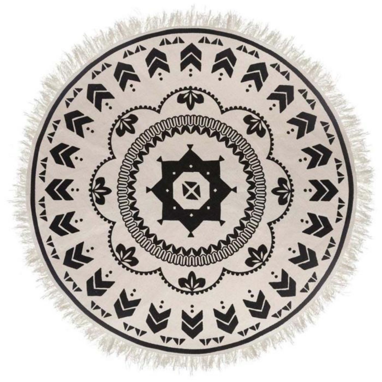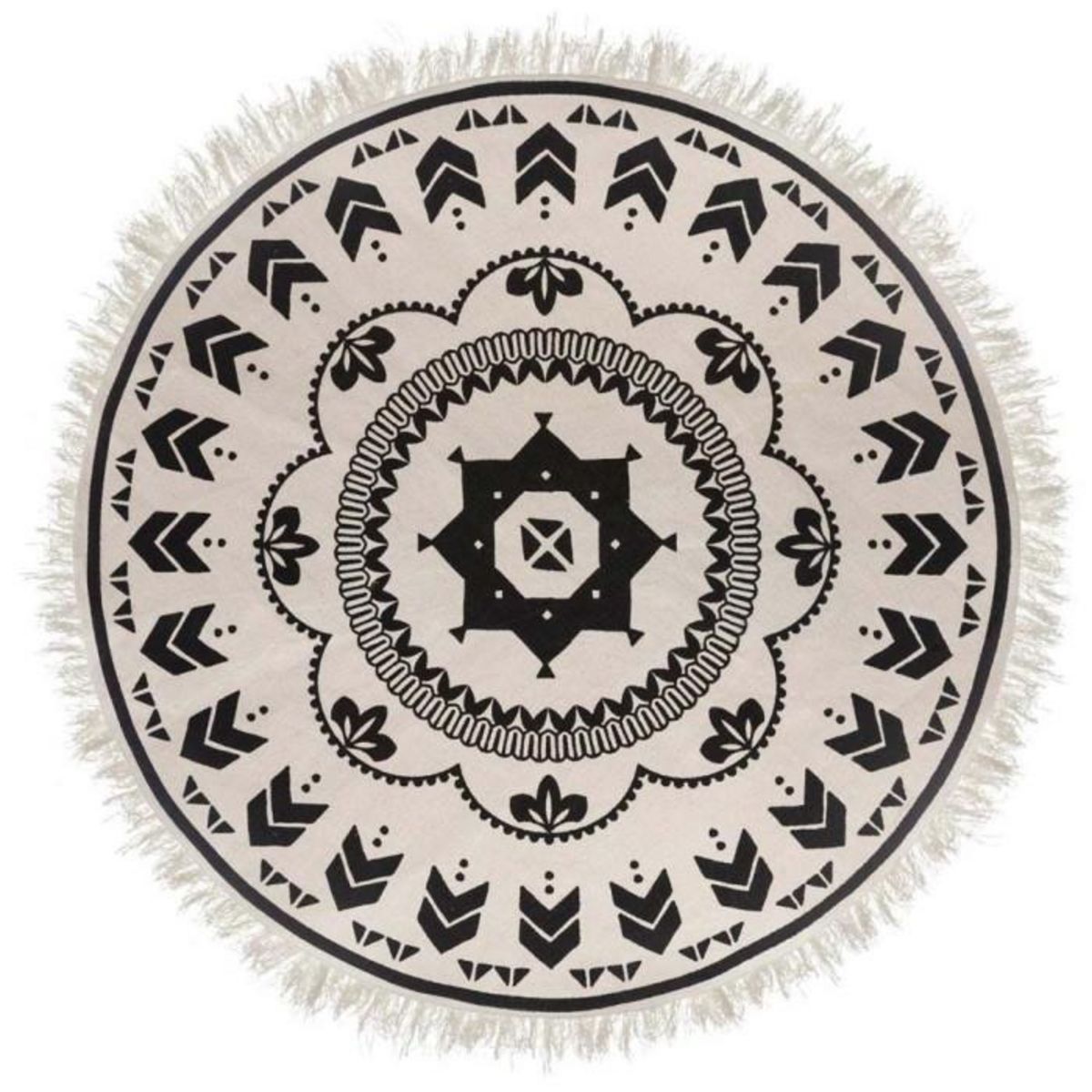 Informations Techniques : Dimensions : D. 120 cm Matière : Coton Spécificités : Design & Charmant Tapis déco Forme ronde Motif ethnique Facile d'entretien & d'utilisation Poids : 1,05 kg Couleur : Noir & Blanc