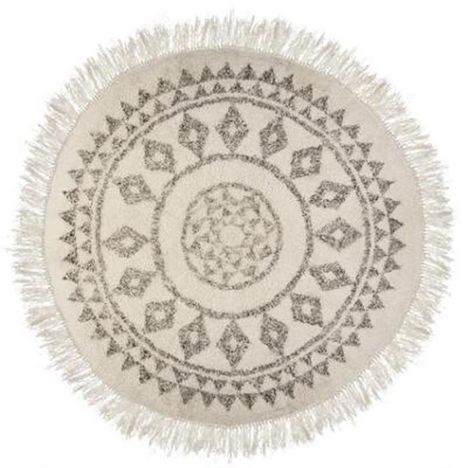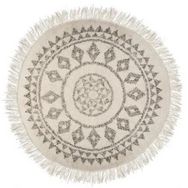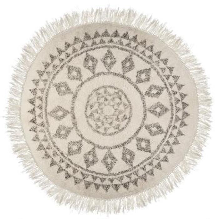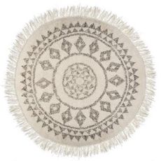 Informations Techniques : Dimensions : D. 120 cm Matières : Coton, Polyester & Viscose Spécificités : Imprimé Ethnique Forme Ronde Pratique & Déco Entretien Facile Poids : 1,75 kg Couleur : Blanc & Noir