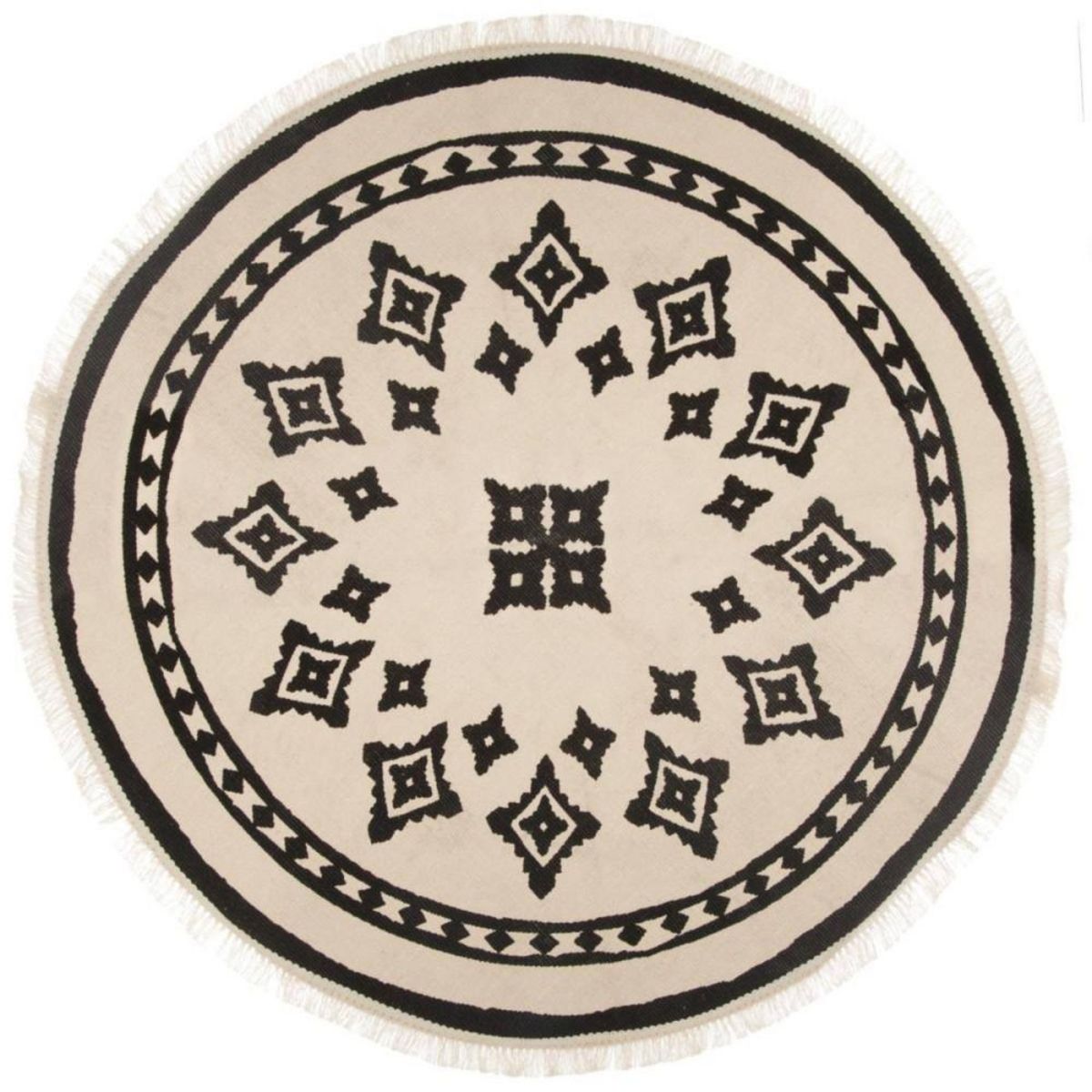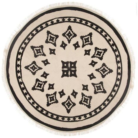 En savoir +Apportez une touche d'ethnique bicolore dans votre intérieur avec ce magnifique tapis circulaire bicolore nomade. Tendance world, ce beau tapis de diamètre 90 cm en coton et polyester sera un gage d'élégance.Composition : 53% coton, 44% polyester, 3% viscose