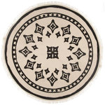 Apportez une touche d'ethnique bicolore dans votre intérieur avec ce magnifique tapis circulaire bicolore nomade. Tendance world, ce beau tapis de diamètre 90 cm en coton et polyester sera un gage d'élégance.Composition : 53% coton, 44% polyester, 3% viscose