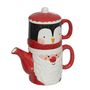Informations Techniques : Dimensions : L. 16 x l. 8,9 x H. 21 cm Matière : Dolomite Spécificités : Pratique & Déco Théière avec tasse de Noël Empilable Design Père Noël et pingouin Poids : 0,48 kg Couleur : Multicolore