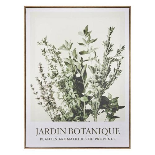 Informations Techniques : Dimensions : L. 45 x l. 2,5 x H. 60 cm Matières : MDF, Polystyrène, Acier & Polyester Spécificités : Déco & Bucolique Toile murale encadrée Imprimé jardin botanique Visserie non incluse Poids : 0,87 kg Couleur : Vert
