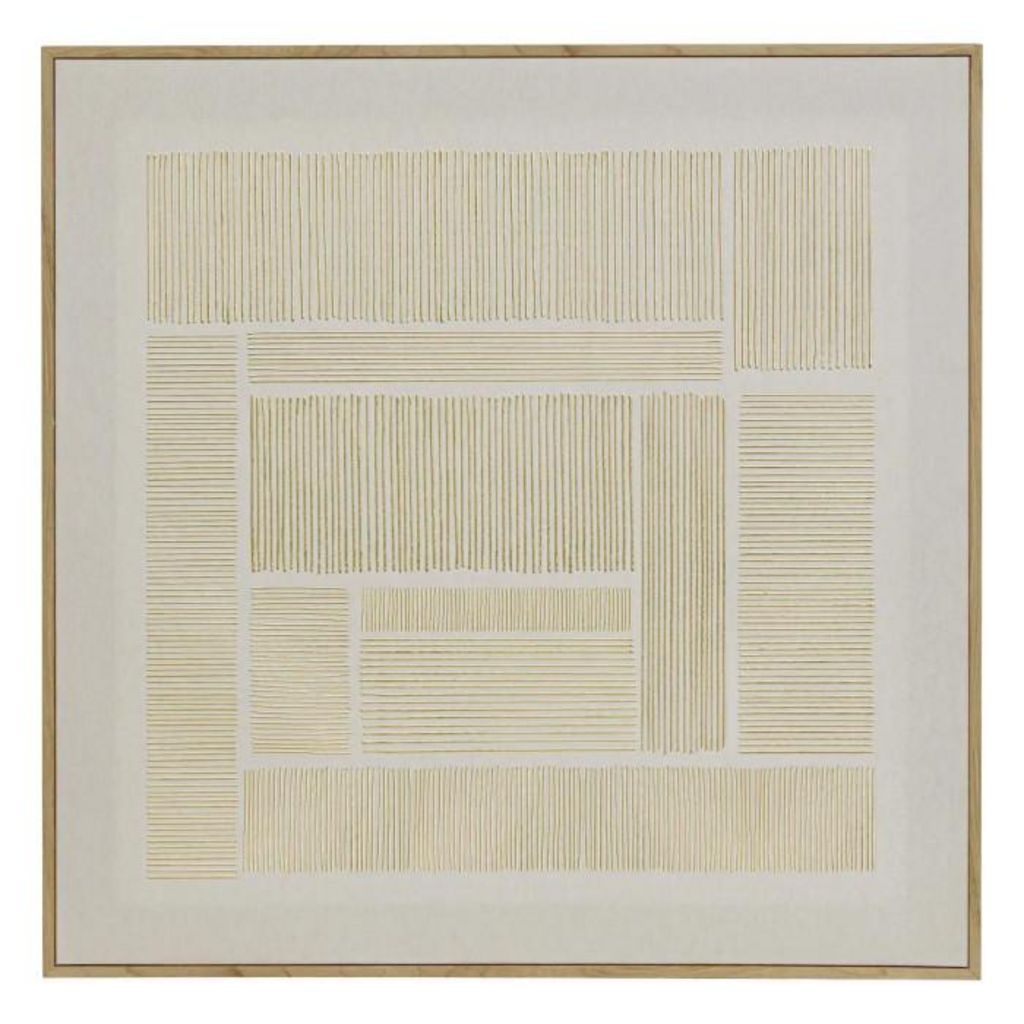 Informations Techniques : Dimensions : L. 58 x l. 2,3 x H. 58 cm Matières : MDF & Polyester Spécificités : Déco & Élégante Toile murale carrée Imprimé métallisé doré Poids : 0,94 kg Couleur : Beige